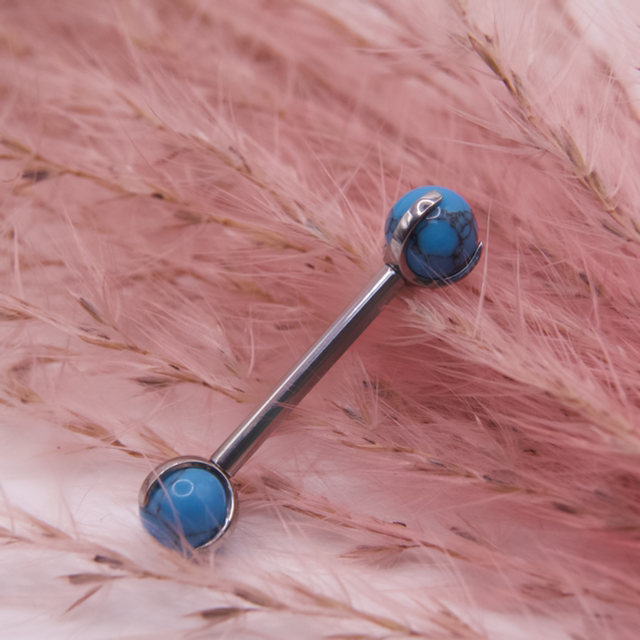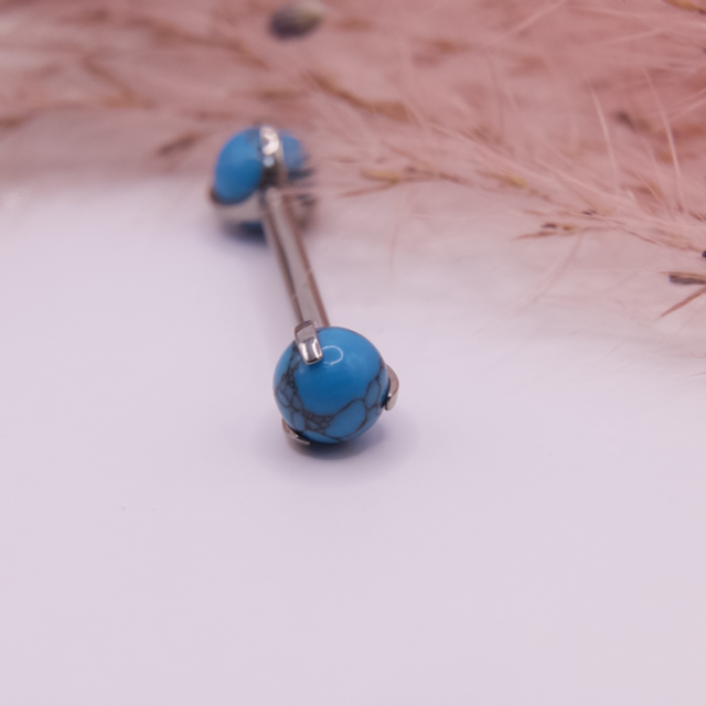 Barbell pour piercing téton en pierre naturelle - Turquoise en titane ASTM-f136. Pas de vis interne.