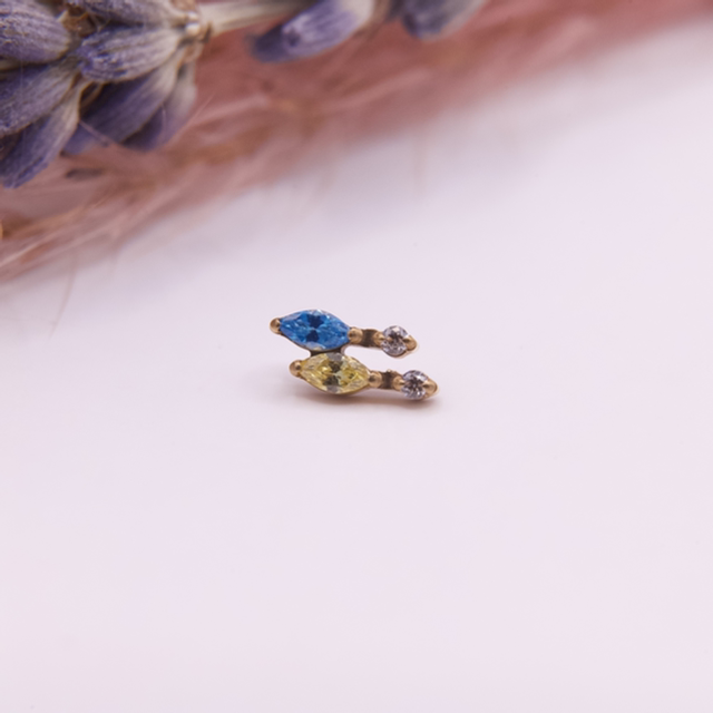 Embout Nayade V14 Bleu & Jaune en titane ASTM F-136 avec revêtement PVD (pour la version dorée)