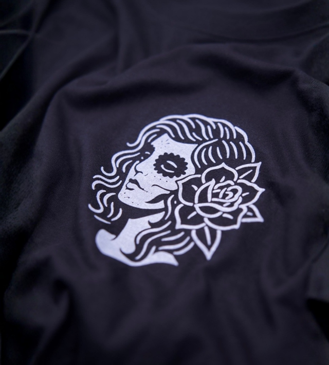 T-shirt “Calavera” Noir imaginé par notre tatoueur et sérigraphié par nos soins.