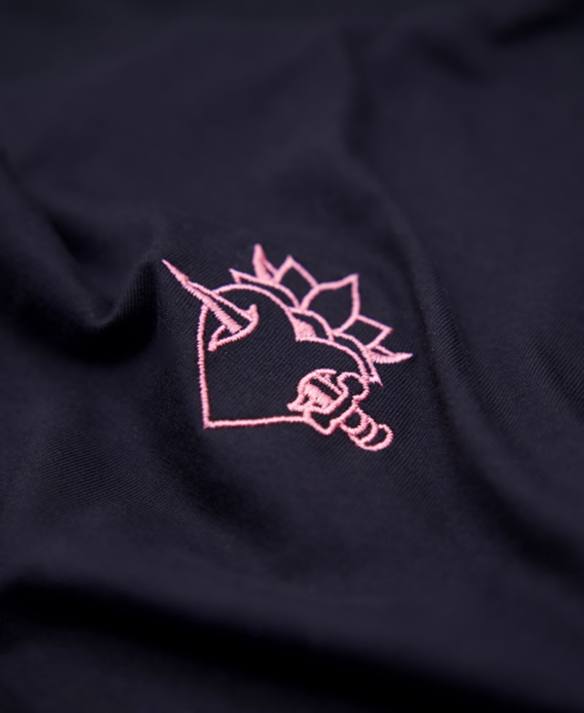 T-shirt bordé noir - Cœur rose, imaginé par notre tatoueur.